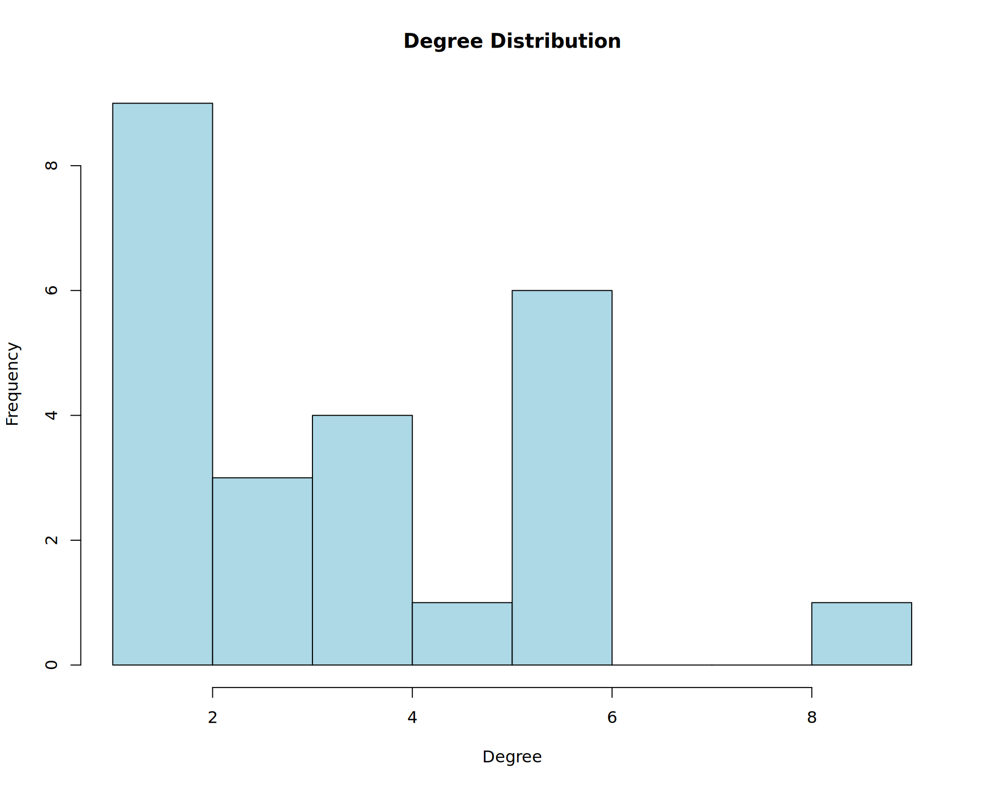 Network Efficiency: With an average path length of 2.69 and diameter of 5, the network exhibits small-world properties, allowing efficient information propagation.