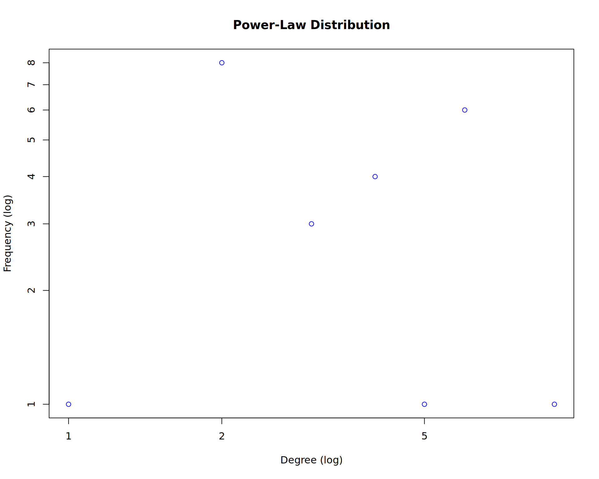 xlab="Degree (log)", ylab="Frequency (log)", main="Power-Law Distribution")