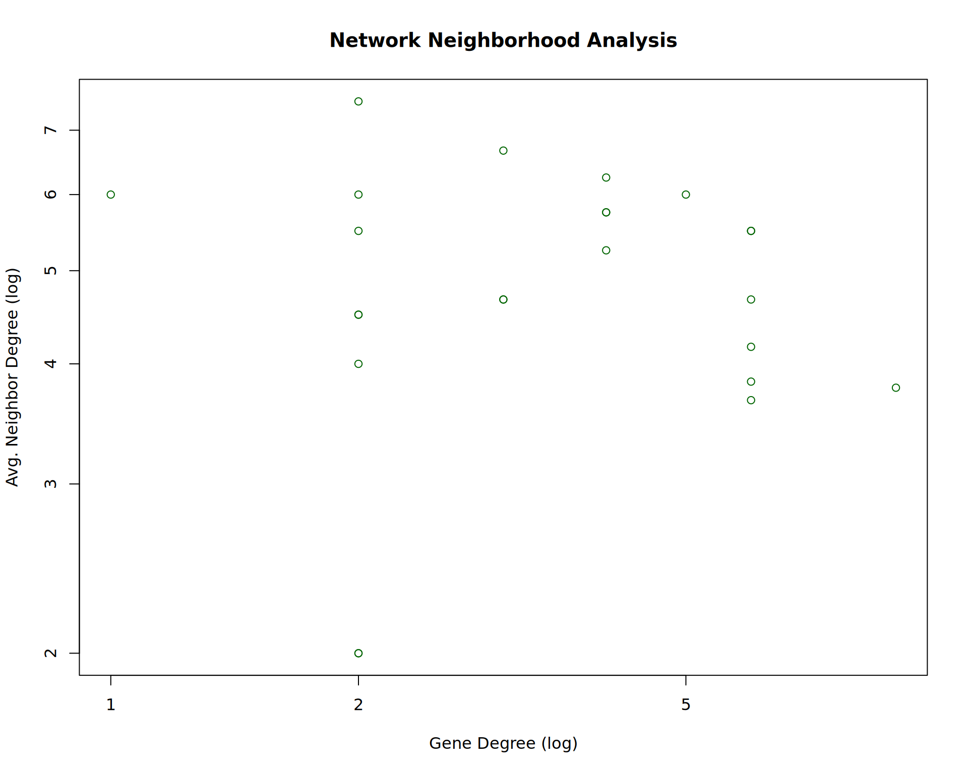 xlab="Gene Degree (log)", ylab="Avg. Neighbor Degree (log)",